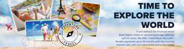 We make traveling easier and more affordable than ever! From booking flights and accommodations to securing travel insurance and exclusive deals, we've got you covered. Whether you have an emergency or unplanned trip or embarking on your first travel experience, our expert team is here to guide you. Plus, with flexible payment plans and ticket financing options, you can book your dream trip today and pay later. We handle all the details so you can focus on creating unforgettable memories. Your adventure begins here!